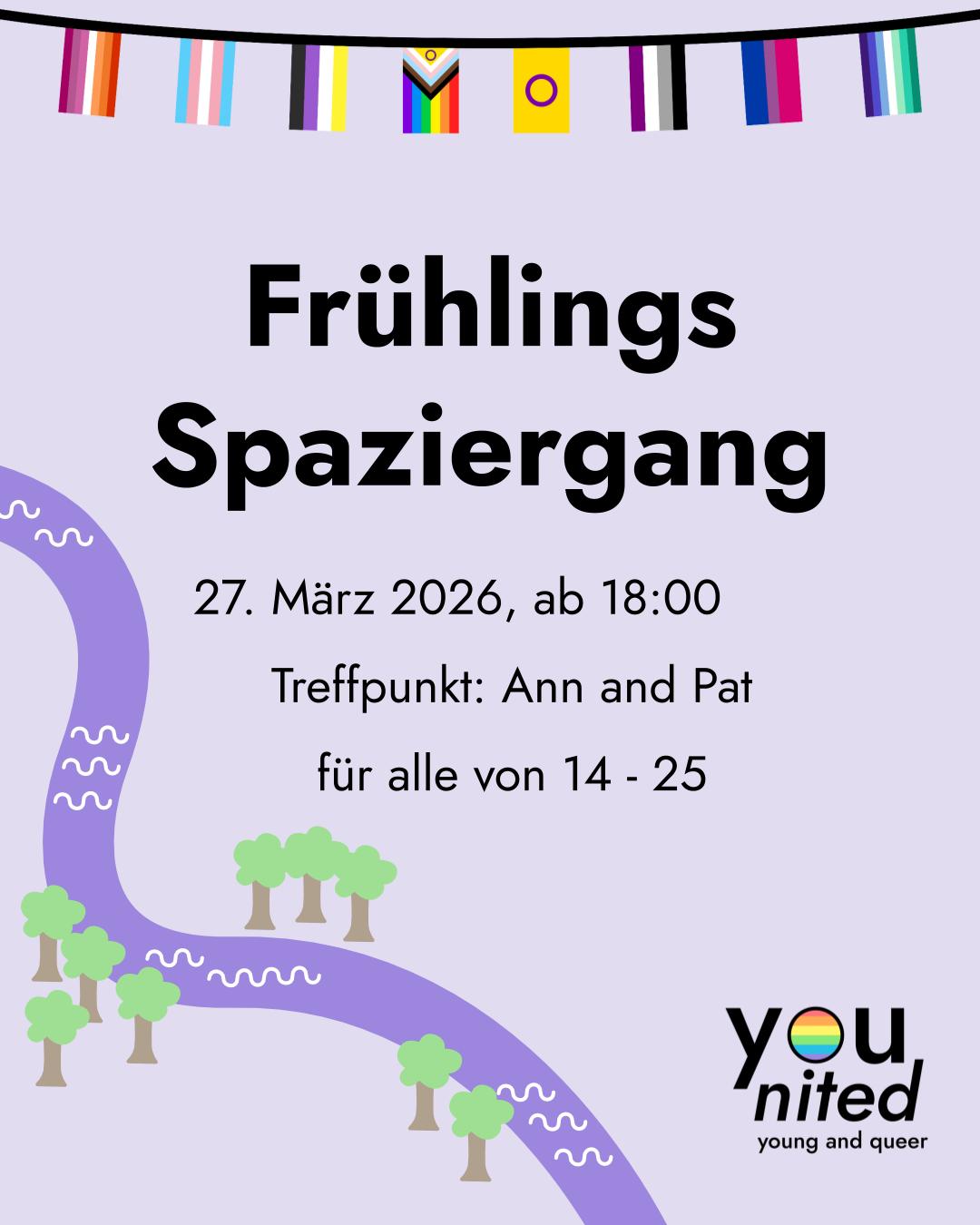 Hey Queers!Es ist wieder Frühling, und wir genießen die warme Sonne bei einem Frühlingsspaziergang!Wir sind gemütlich auf der Donaulände unterwegs, und wärmen uns danach bei ein paar Runden Uno im Ann and Pat auf.Bei Schlechtwetter folgen Infos zum Alternativprogramm.Treffpunkt ist ab 18:00 im Jugendzentrum Ann and Pat.Willkommen sind alle zwischen 14 und 25 Jahren.Wer neu […]